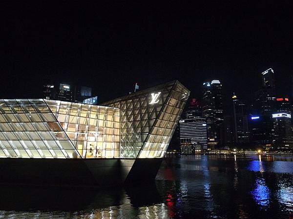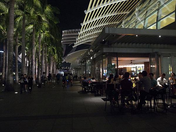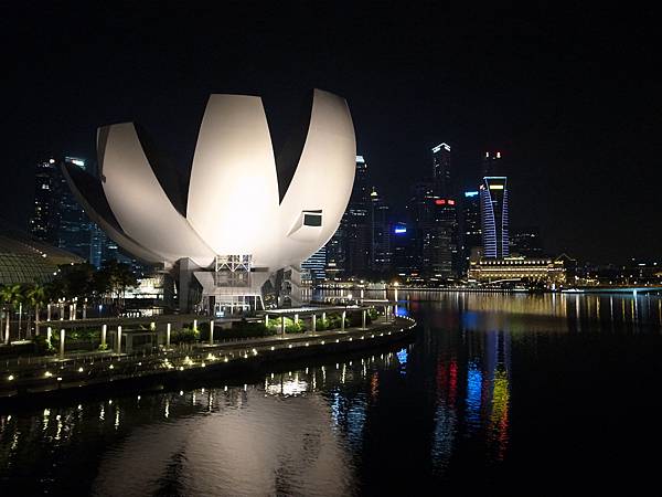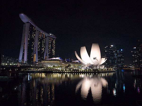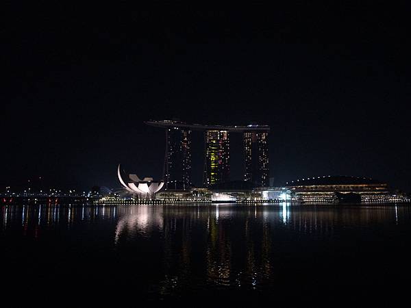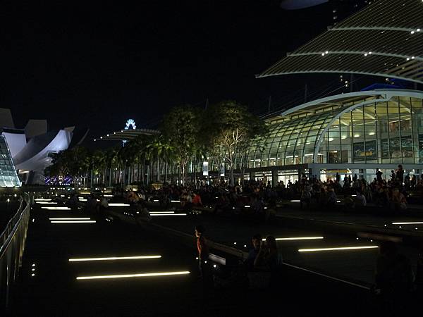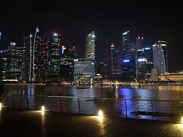 金沙酒店前,有一個非常寬敞的木棧板廣場,是觀賞水舞秀的絕佳位置。一踏上木棧板整個心花怒放,高樓大廈配上濱海灣的夜景真是太美了,晚間微風徐徐吹來非常舒服,秋天真是個適合來新加坡的季節!這畫面讓我想起了上海的外灘、想起了香港的維多利亞港,這三座濱海的不夜城有幾分相似之處,但不知為什麼我最最喜歡新加坡,有一種格外的摩登感,印象中大家都愛說新加坡地小人口多,但是真正踏上這裡的自己卻覺得這座城市讓人感覺一點都不擁擠,大樓的密度也不致於讓人喘不過氣,一眼望去夜景的每一處好像都規劃好了似的 (我相信真有可能是規劃好了的) 待在它該有的位置,不多不少剛剛好。